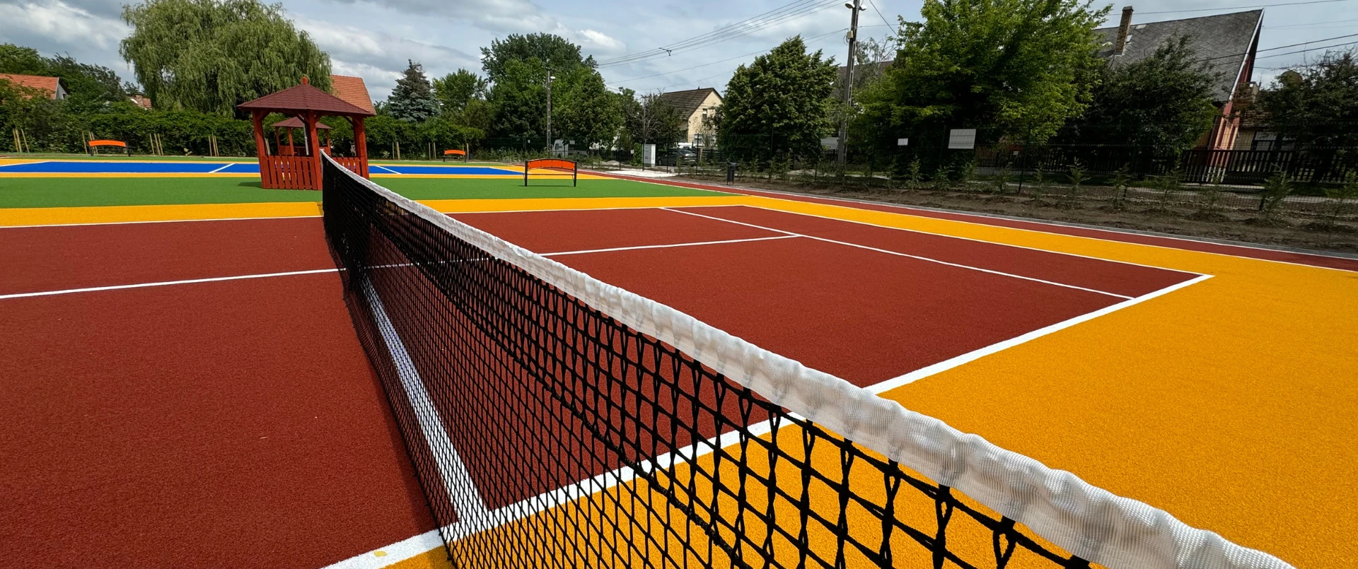 Nincsenek pocsolyák, esőzés után 15 perccel már száraz játékfelület vár.